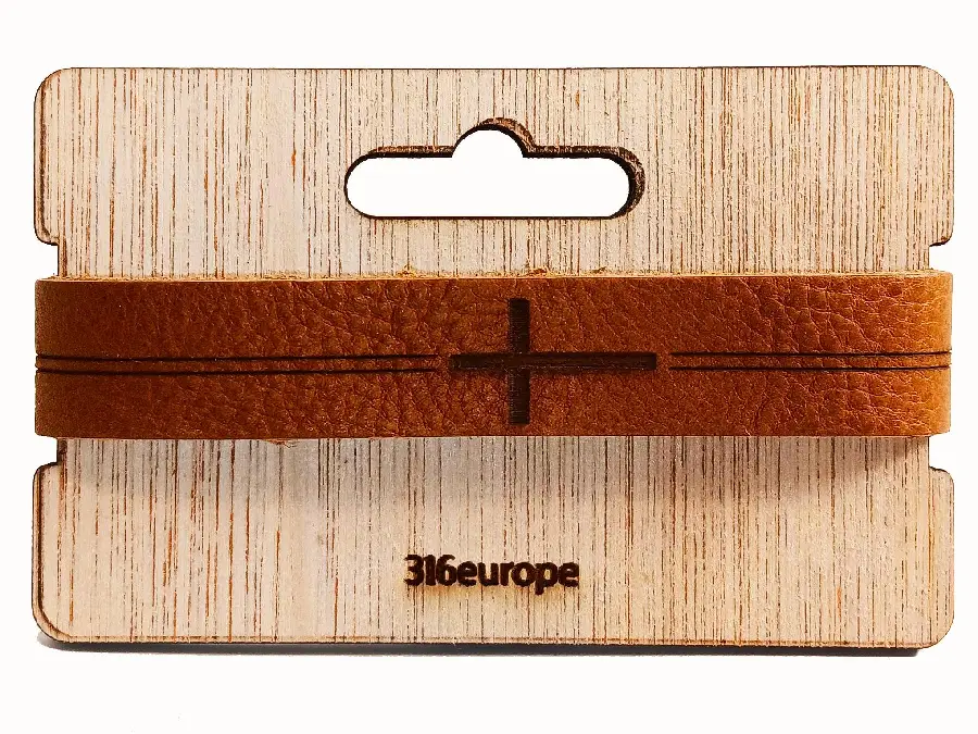 Leather bracelet adjustable wooden label