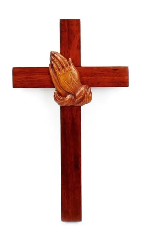 Kruis hang 20cm m bidd handen mahoniehou